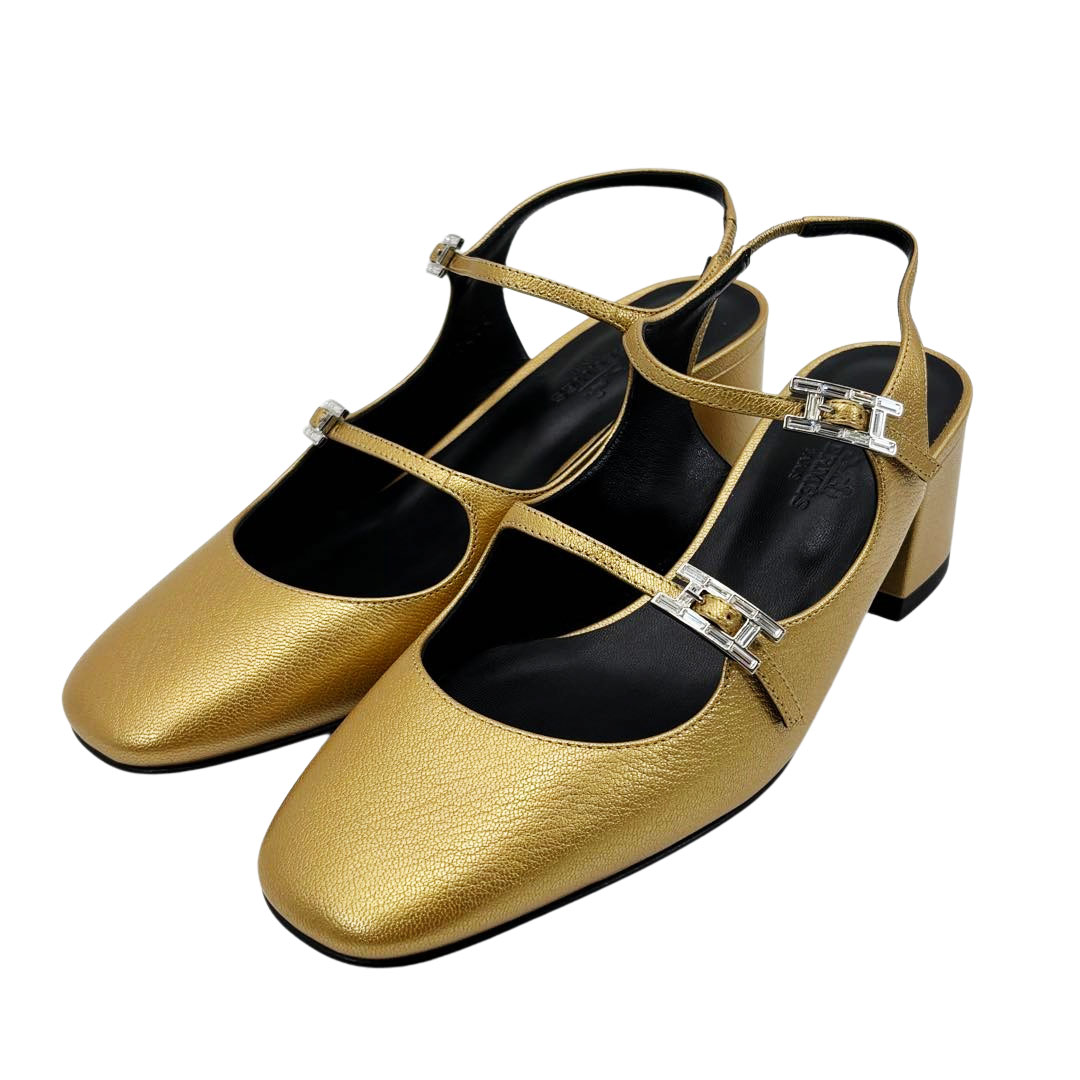 HERMES エルメス ジャッキー 50 パンプス レザー ラインストーン ゴールド 36 1/2(約23.5cm)