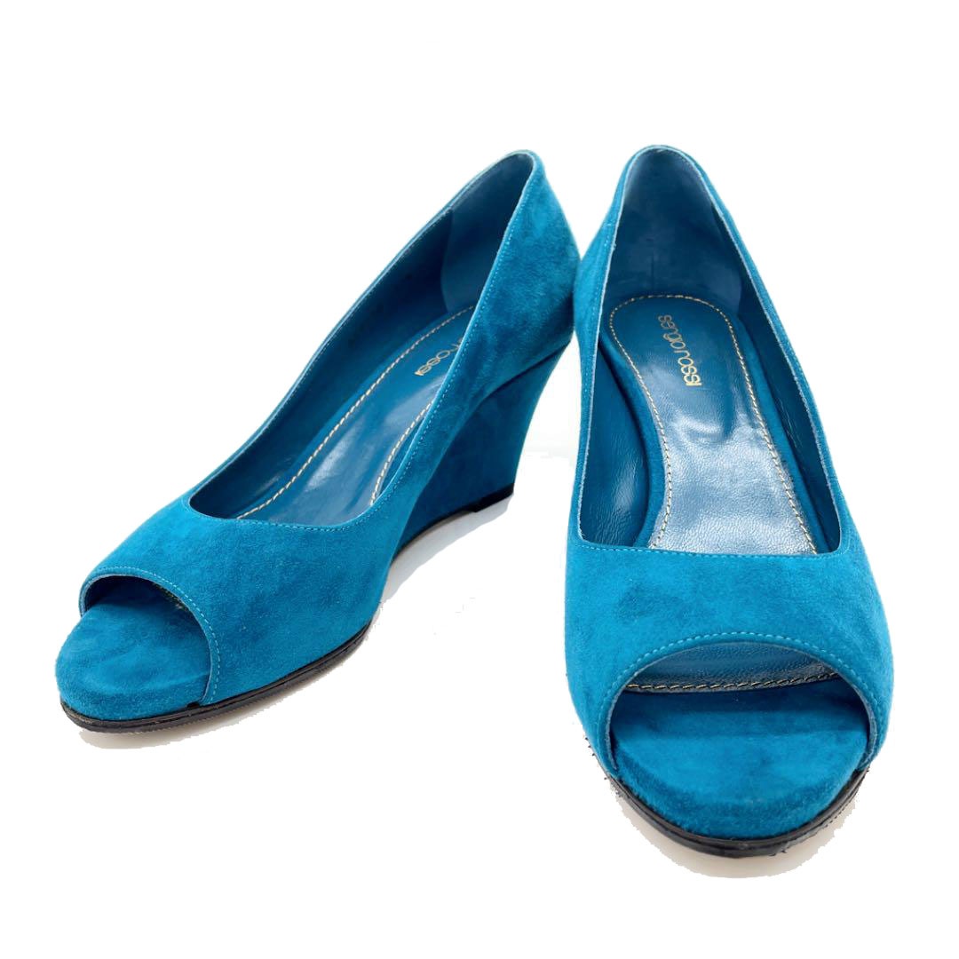 Sergio Rossi セルジオロッシ オープントゥ パンプス ウェッジソール スエード ブルー 371/2(約22.5cm)