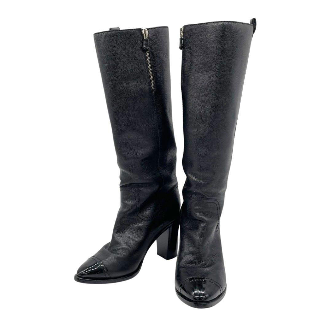 CHANEL シャネル ロングブーツ ココマーク レザー/エナメル ブラック 37C(約24cm)