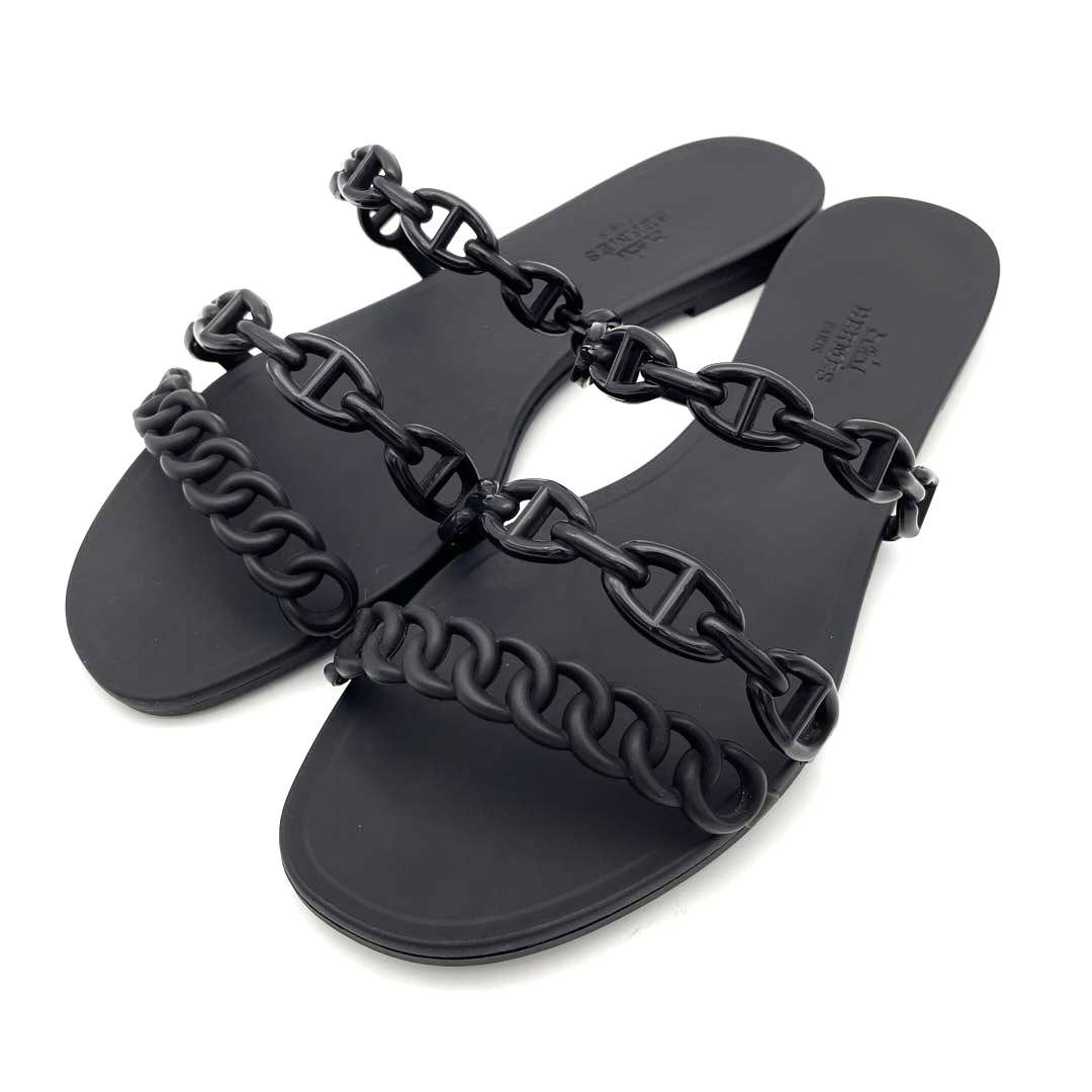 HERMES エルメス リヴァージュ フラット サンダル シェーヌダンクル ラバー 37(約24cm) ブラック