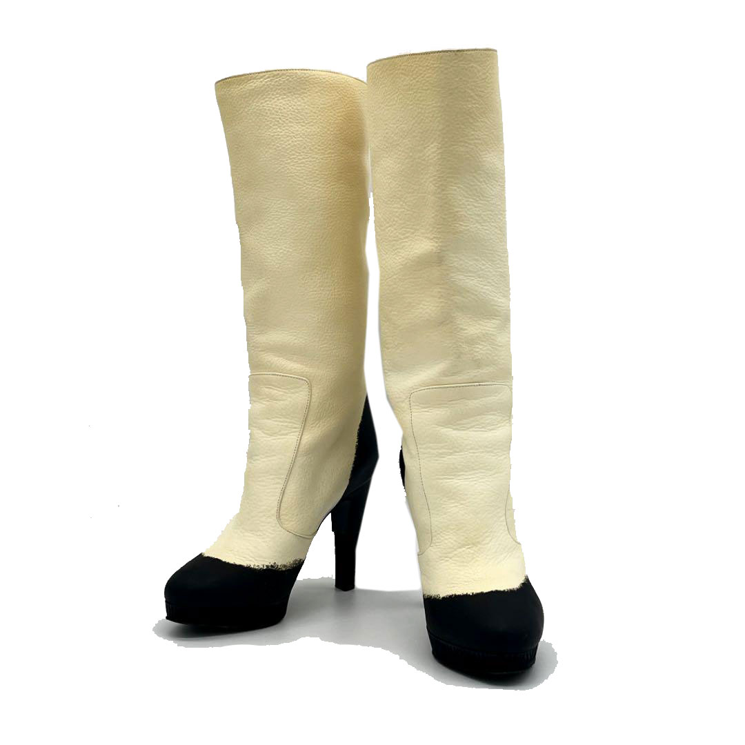 CHANEL シャネル ロングブーツ ココマーク レザー バイカラー アイボリー ブラック 35 1/2C(約22.5cm)