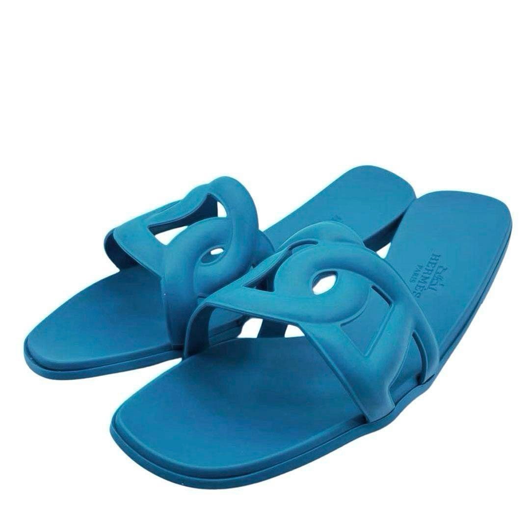 HERMES エルメス レディース サンダル アロハ シェーヌダンクル ラバー ブルーヴィフ 37(約24.0cm) 2020春夏