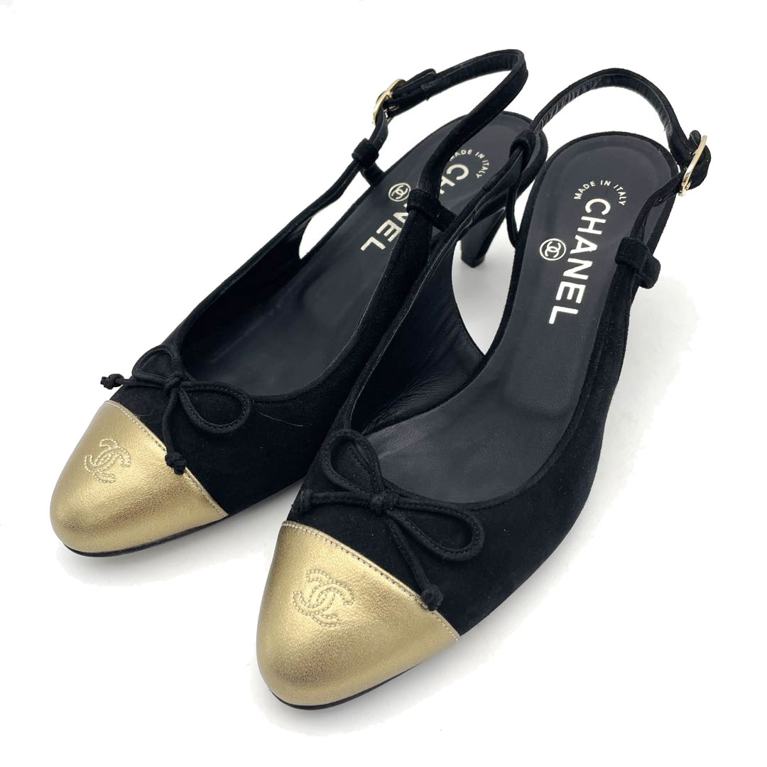 CHANEL シャネル ストラップパンプス ココマーク スエード/レザー ブラック/ゴールド 38C(約25cm)