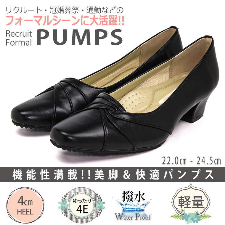らくちん 4E コンフォート フォーマル パンプス レディース 黒 ヒール オフィス 通勤用 リクルート 冠婚葬祭 ビジネス コン...