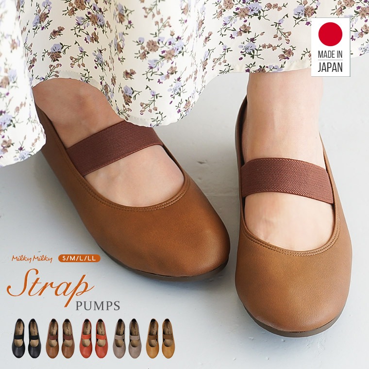 パンプス ローヒール 日本製 ストラップ 痛くない ぺたんこ 歩きやすい シンプル ブラック 軽量 履きやすい 脱げない 黒 ブラ...