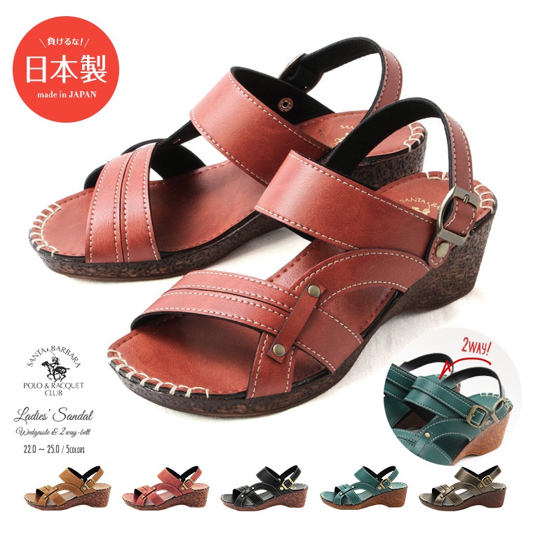 日本製 SANTA BARBARA POLO&RACQUET CLUB 2way カジュアル サンダル レディース 黒 歩きやすい...