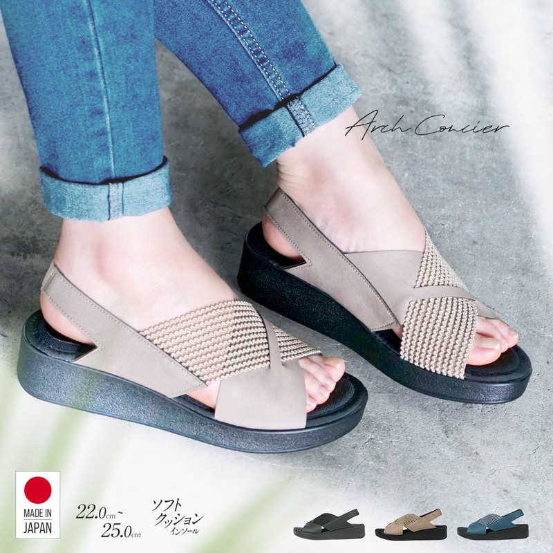 サンダル ストラップサンダル コンフォートサンダル レディース ウェッジソール 日本製 軽量 バックストラップ 脱げにくい オフィ...