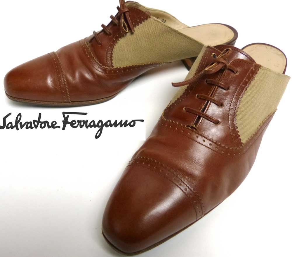 ビンテージ FERRAGAMO フェラガモ 2トーン レザーサンダル 9AA(23.5-24cm相当)(レディース)【中古】