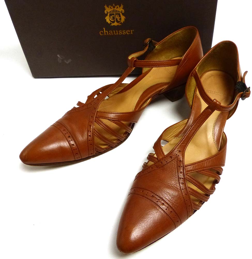 日本製 chausser / ショセ ストラップ レザーサンダル 38(24cm相当)(レディース・箱付き)【中古】