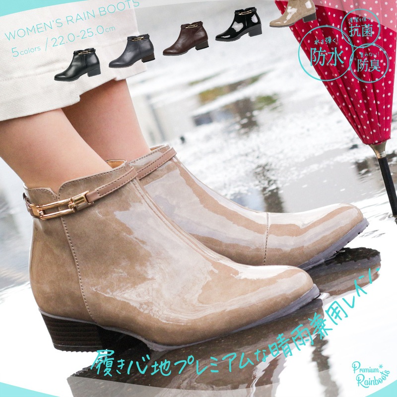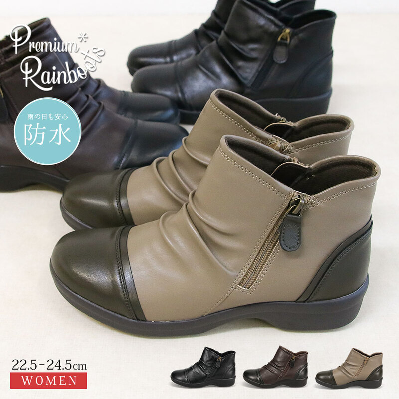 ショートブーツ レディース 防水 ブーツ 歩きやすい ローヒール 4e 幅広 ワイド 軽い レインシューズ おしゃれ 黒 ブラック...