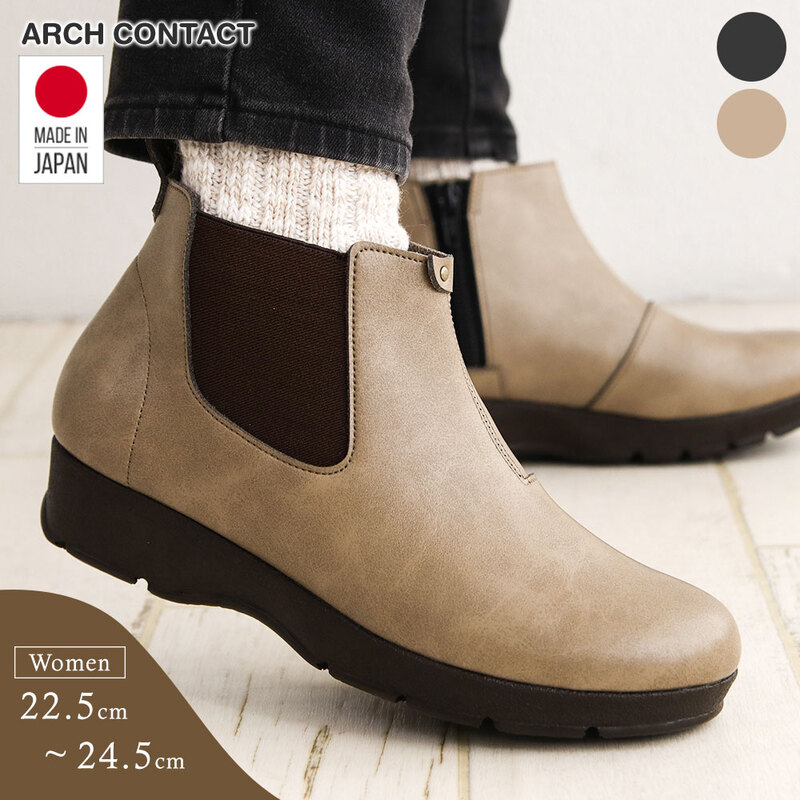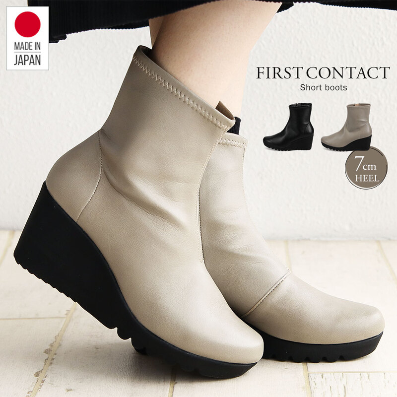 ショートブーツ レディース ファスナー 履きやすい ウェッジソール 日本製 黒 ブラック FIRST CONTACT ファーストコ...