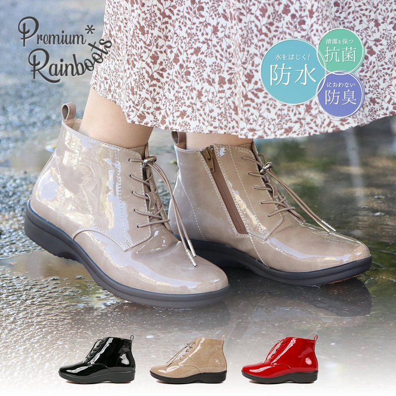 レインブーツ レディース 防水 ショートブーツ ローヒール レースアップ 防水 抗菌 防臭 防滑 幅広 4e 晴雨兼用 サイドファ...