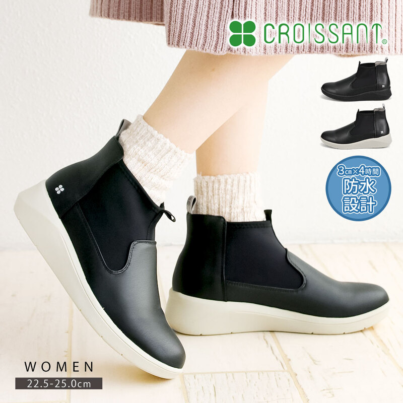 ショートブーツ レディース サイドゴアブーツ 歩きやすい 防水 撥水 カジュアル 軽い クロワッサン CROISSANT 合皮 ブ...