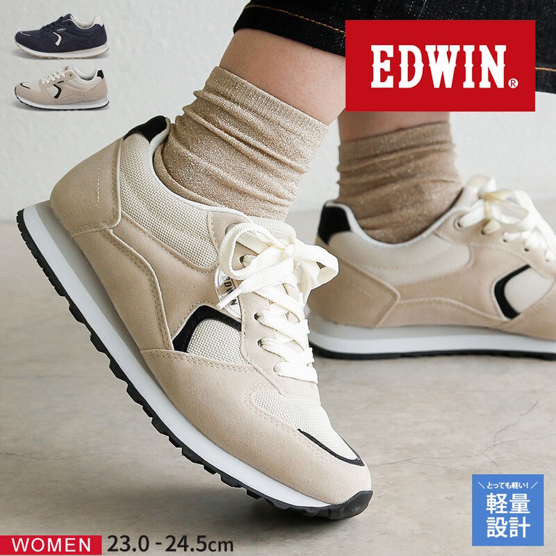 エドウィン スニーカー レディース 軽い ローカット かわいい カジュアル シューズ ローカット 靴 アイボリー ネイビー EDW...