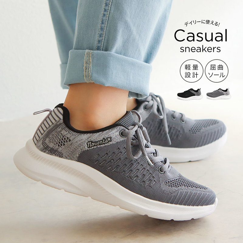 スニーカー レディース 黒 ローカット ニットスニーカー 軽い シンプル ローカットスニーカー ニットシューズ 軽量 運動靴 スポ...