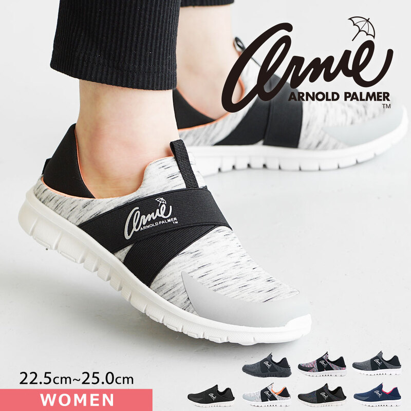アーノルドパーマー スニーカー レディース 黒 ローカット スリッポン スライドフィット 立ったまま履ける ブラック グレー ネ...