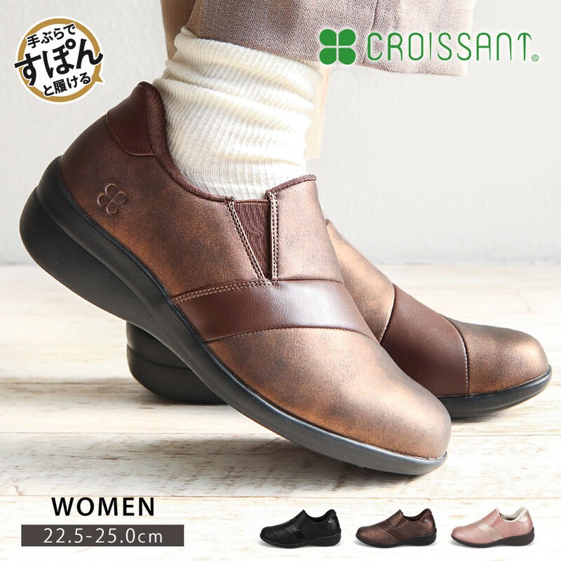 クロワッサン レディース スニーカー 靴 スリッポン ハンズフリー 4E 撥水 黒 ブラック ピンク アイボリー 5102 CRO...
