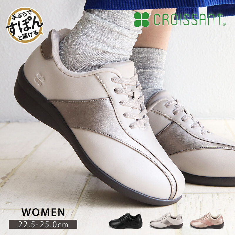 クロワッサン レディース スニーカー スリッポン 靴 ハンズフリー 4E 撥水 おしゃれ ブラック ピンク アイボリー 5101 ...