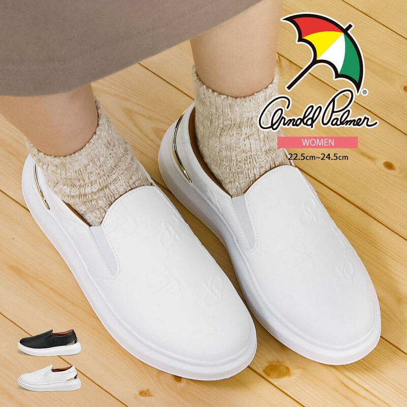 アーノルドパーマー スニーカー レディース 厚底 軽量 軽い ローカット シンプル スリッポン 白 ジュニア 黒 通気性 ブラック...