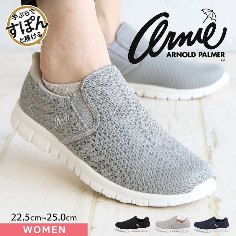 アーノルドパーマー スニーカー レディース 黒 ローカット スリッポン スライドフィット 立ったまま履ける ブラック グレー ネ...