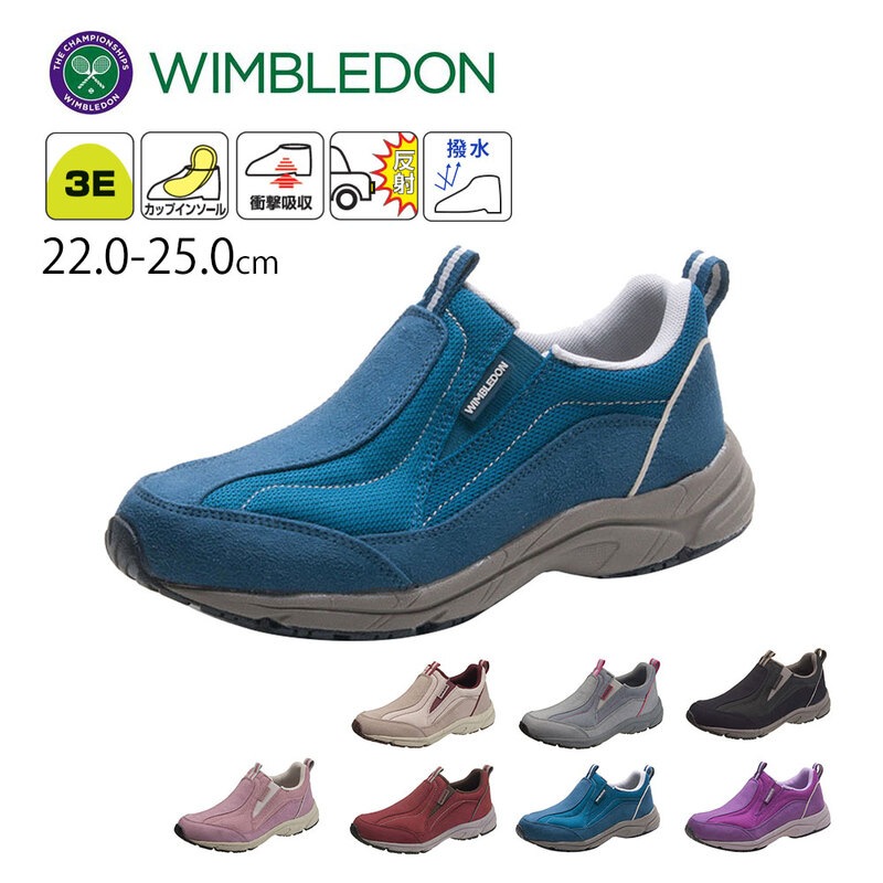スリッポン レディース 黒 3E 撥水 反射板 衝撃吸収 運動靴 ウィンブルドン ブラック ベージュ グレー ピンク 赤 レッド ...