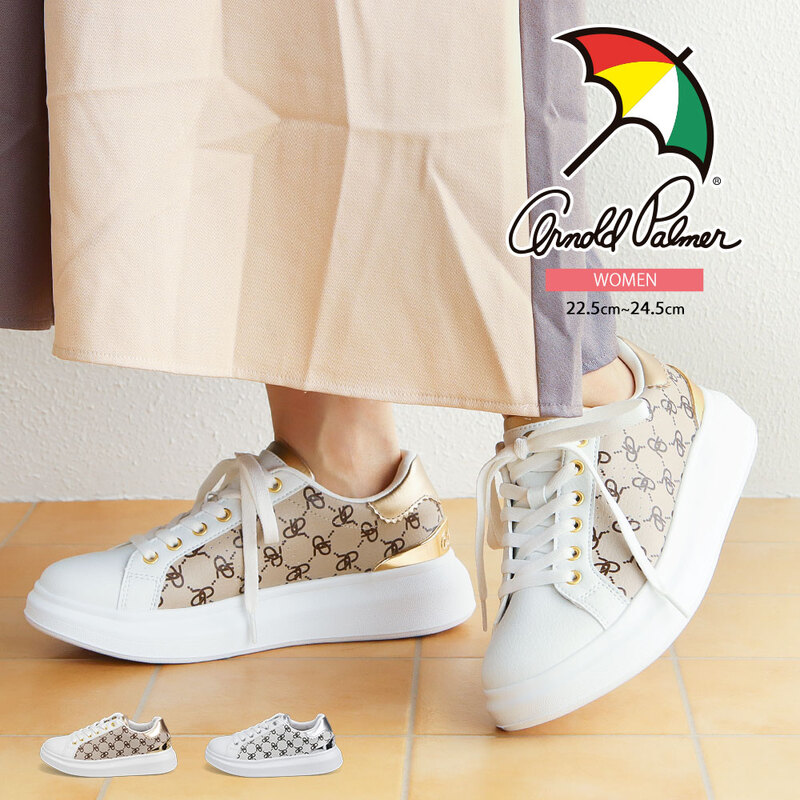 アーノルドパーマー スニーカー レディース ジュニア 厚底 軽量 ローカット 通気性 紐靴 レースアップ コートスニーカー ベージ...