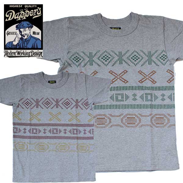 【Dapper\'s(ダッパーズ)】Aztec Print Design Crew Neck Tee Special Sewing...