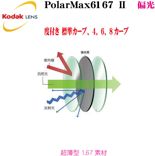 Kodak コダック 偏光レンズPolarMax6167-2 1.67超薄型 度付き polarmax6167