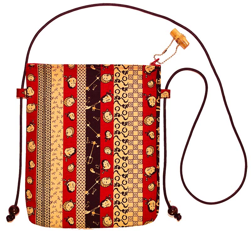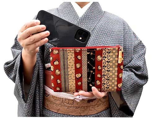 時代小紋 竹玉付天ファスナーポシェット 赤