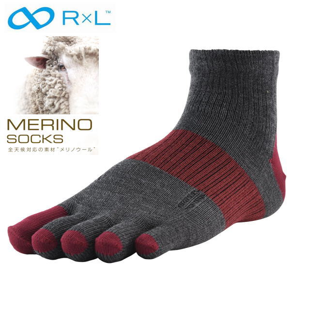 RxL アールエル 武田レッグウェアー 5本指メリノウールランニングソックス M-MULTI MWS5002 チャコール/ワイン ...