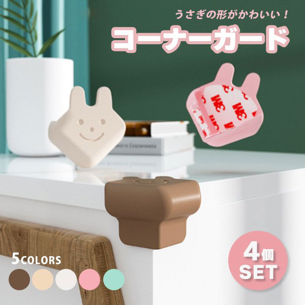 【即納】日用品 コーナーガード うさぎ形状 4個セット 角クッションガード 裏面両面テープ付き 取付簡単 シリコン素材 衝撃吸収 ...