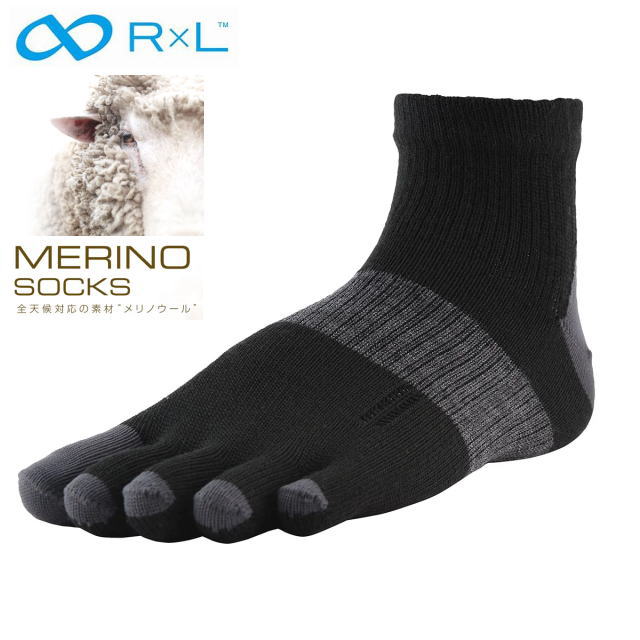 RxL アールエル 武田レッグウェアー 5本指メリノウールランニングソックス M-MULTI MWS5002 ブラック/チャコール...