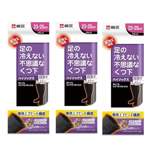 足の冷えない不思議なくつ下 ハイソックス 超薄手 ブラック 23-25cm 1足 ×3【3個セット】【ネコポス】 桐灰 冷え 靴下...