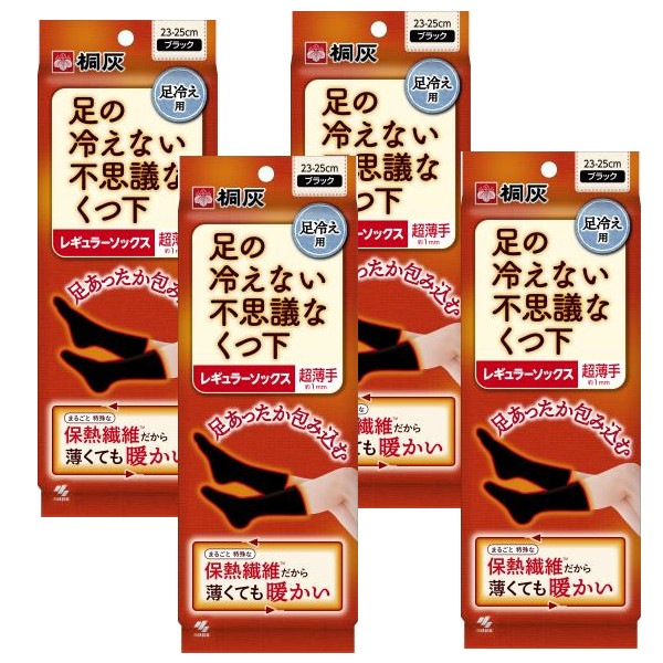 足の冷えない不思議なくつ下 レギュラーソックス 超薄手 ブラック 23-25cm ×4【4個セット】【ネコポス】桐灰 冷え 靴下 ...