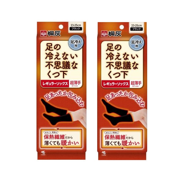 足の冷えない不思議なくつ下 レギュラーソックス 超薄手 ブラック 23-25cm ×2【2個セット】【ネコポス】桐灰 冷え 靴下 ...