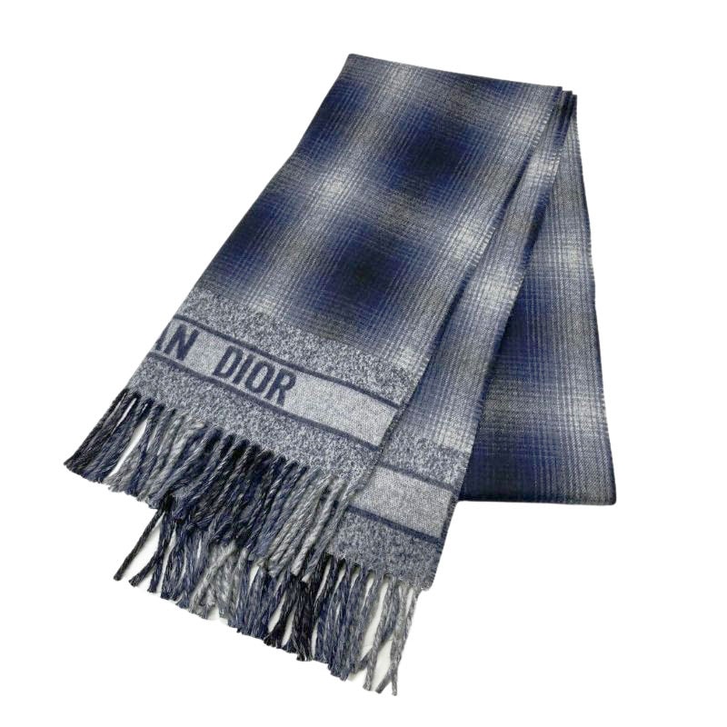 Christian Dior クリスチャンディオール ショール マフラー ウール100% チェック柄 ネイビー グレー 05TAR...