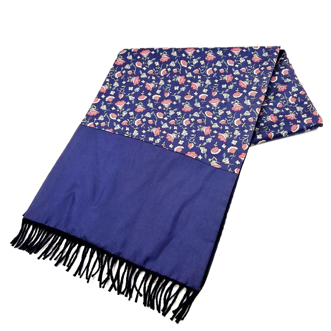 HERMES エルメス マフラー ボタニカル 花柄 カシミヤ/ウール/シルク ネイビー系