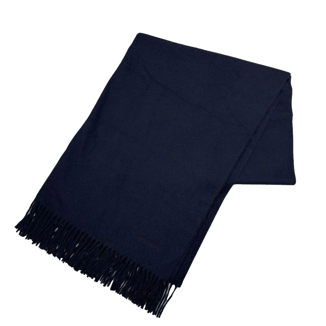 HERMES エルメス ショール ストール マフラー ロゴ刺繍 無地 カシミヤ ネイビー スコットランド製
