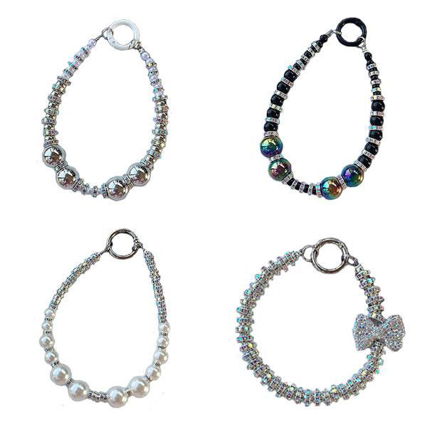 【セール】即納 安い スマホストラップ ハンドストラップ 手首 リストストラップ ビーズ リングチェーン ホルダー付き ビジュー ...