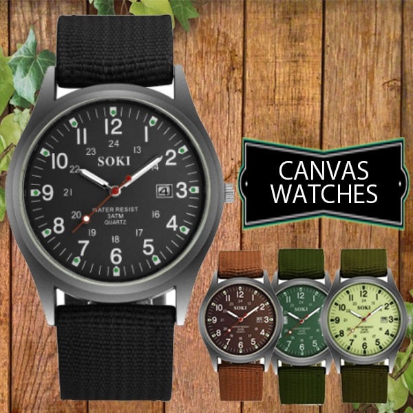 【セール】即納 安い メンズ 腕時計 キャンバス ストラップ 通勤 通学 カジュアル ストリート 軽量 お洒落