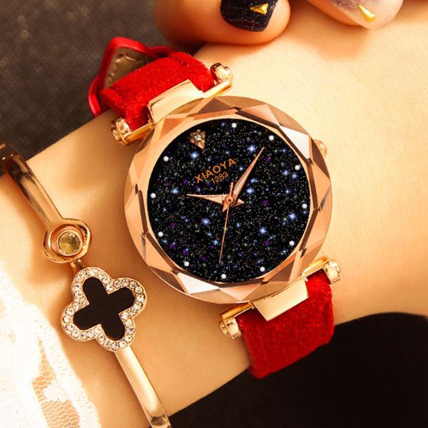 レディース 星空模様 文字盤 腕時計 クォーツ スエード調 ストラップ 手首 ベルト 発光 ウォッチ 柔らかい 蓄光機能付き アク...