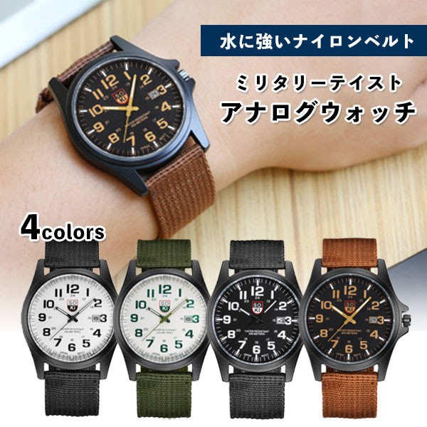 メンズ ミリタリーウォッチ クォーツ時計 腕時計 ナイロンベルト 盤面 ストリート サバイバル ビジネス 軽量 お洒落