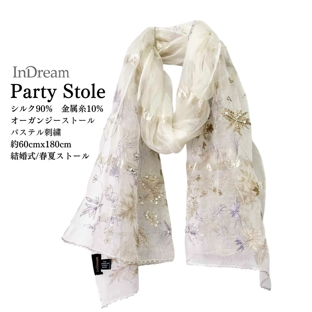 InDream シルク オーガンジー ストール ナチュラルホワイト ラベンダー ゴールド 古希 お祝い 結婚式 ストール パーティ...