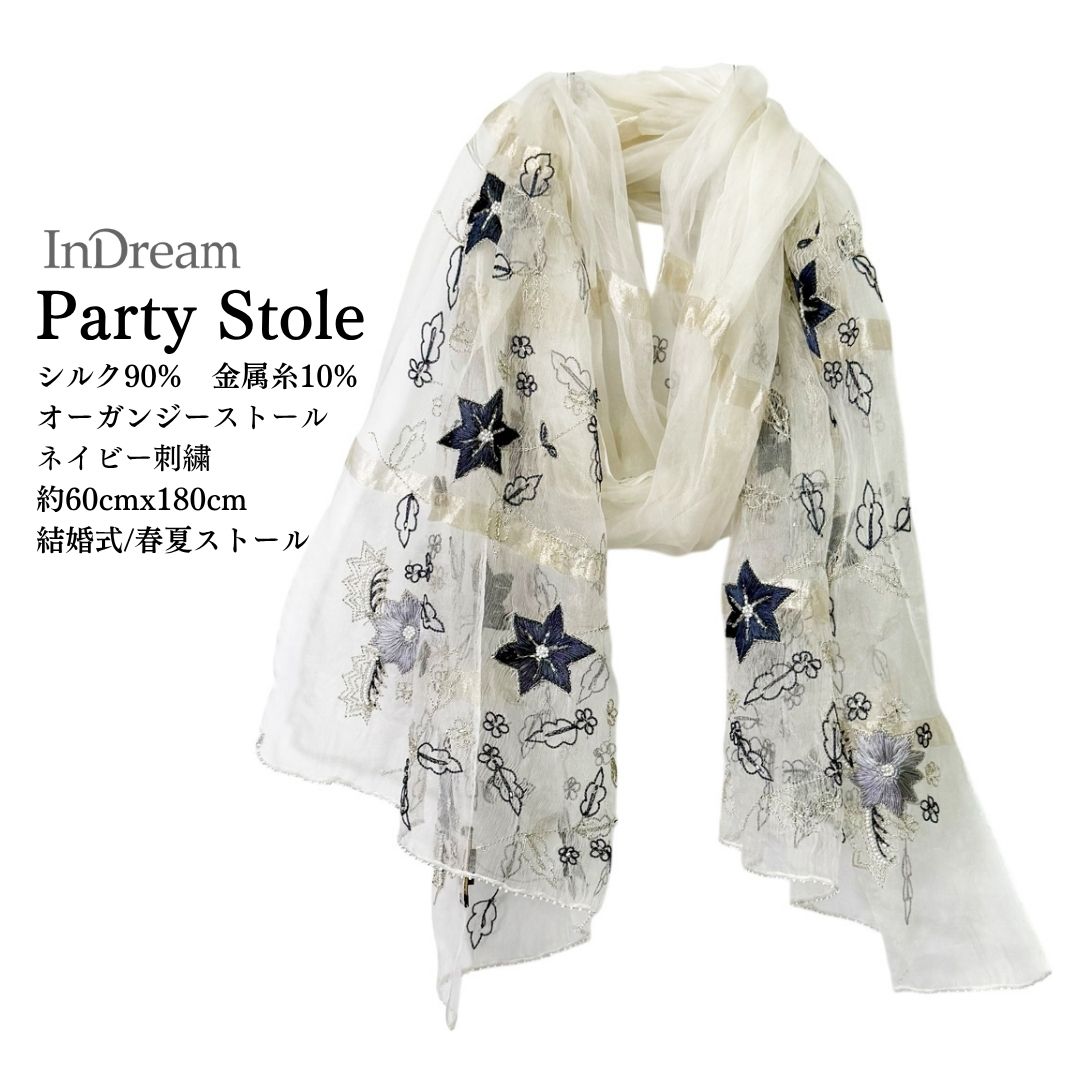 InDream シルク オーガンジー ストール ナチュラルホワイト ネイビー お祝い 結婚式 ストール パーティー 誕生日 プレゼ...