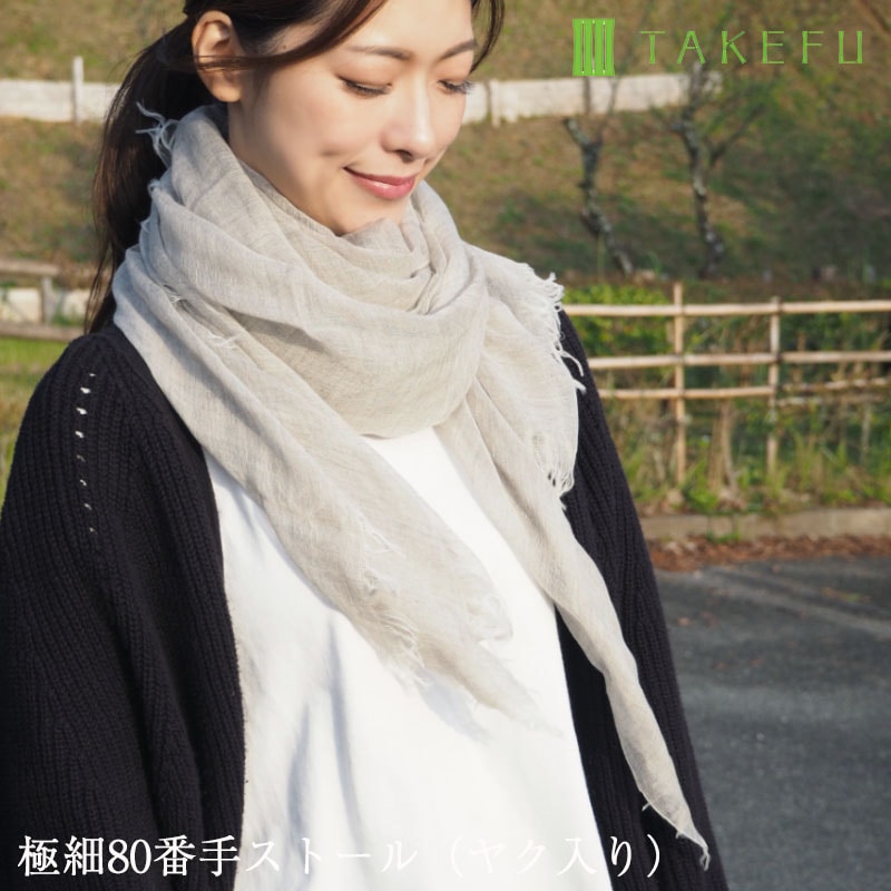 TAKEFU 竹布 極細80番手ストール(ヤク入り) (メール便使用で送料無料!)