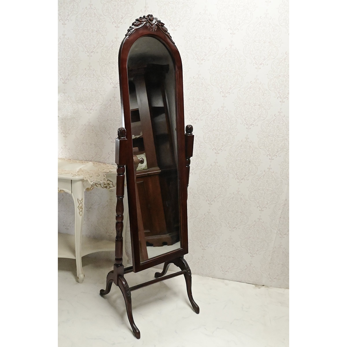アンティークテイスト ロココ調家具 重厚なマホガニー スタンドミラー 送料無料