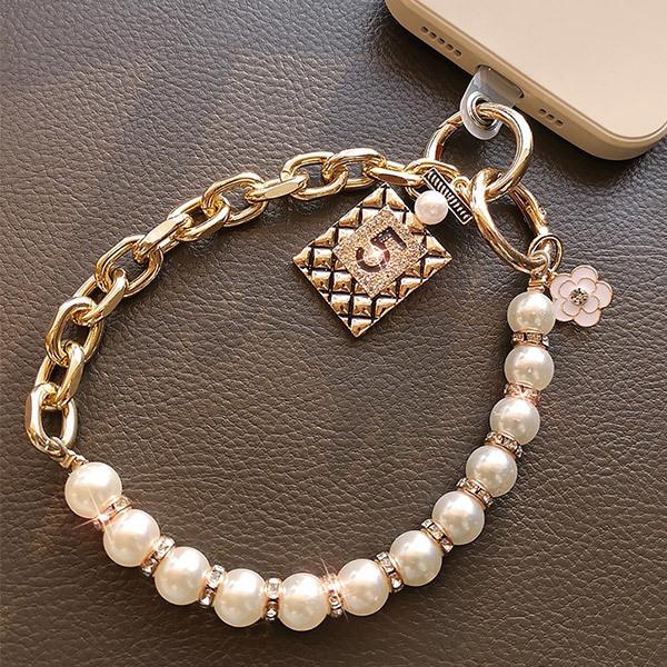 【セール】即納 安い スマホハンドストラップ フェイクパール お花チャーム 5の刻印チャーム キラキラ かわいい エレガント 落...