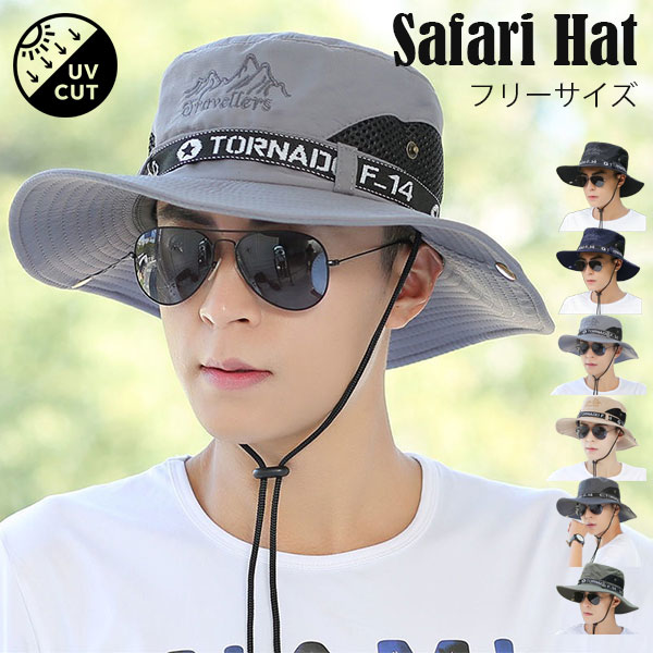 【即納】サファリハット つば広 UVカット メッシュ 通気性 蒸れにくい 軽量 紐付き 紫外線対策 スナップボタン付き テンガロン...