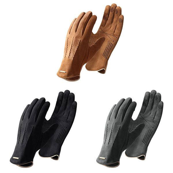 メンズ スマホ対応 5本指 手袋 グローブ 滑り止め フェイクスエード 合成皮革 スリット入り 通勤 バイク アウトドア 手触り ...