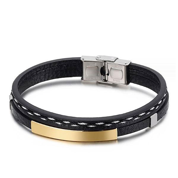 メンズ ステンレスプレート 2連 レザー ブレスレット バングル 腕輪 差し込み バックル ジュエリー アクセサリー ギフト プレ...